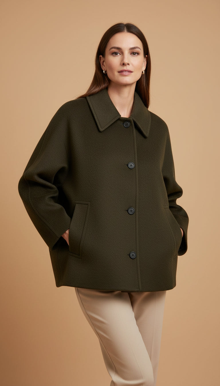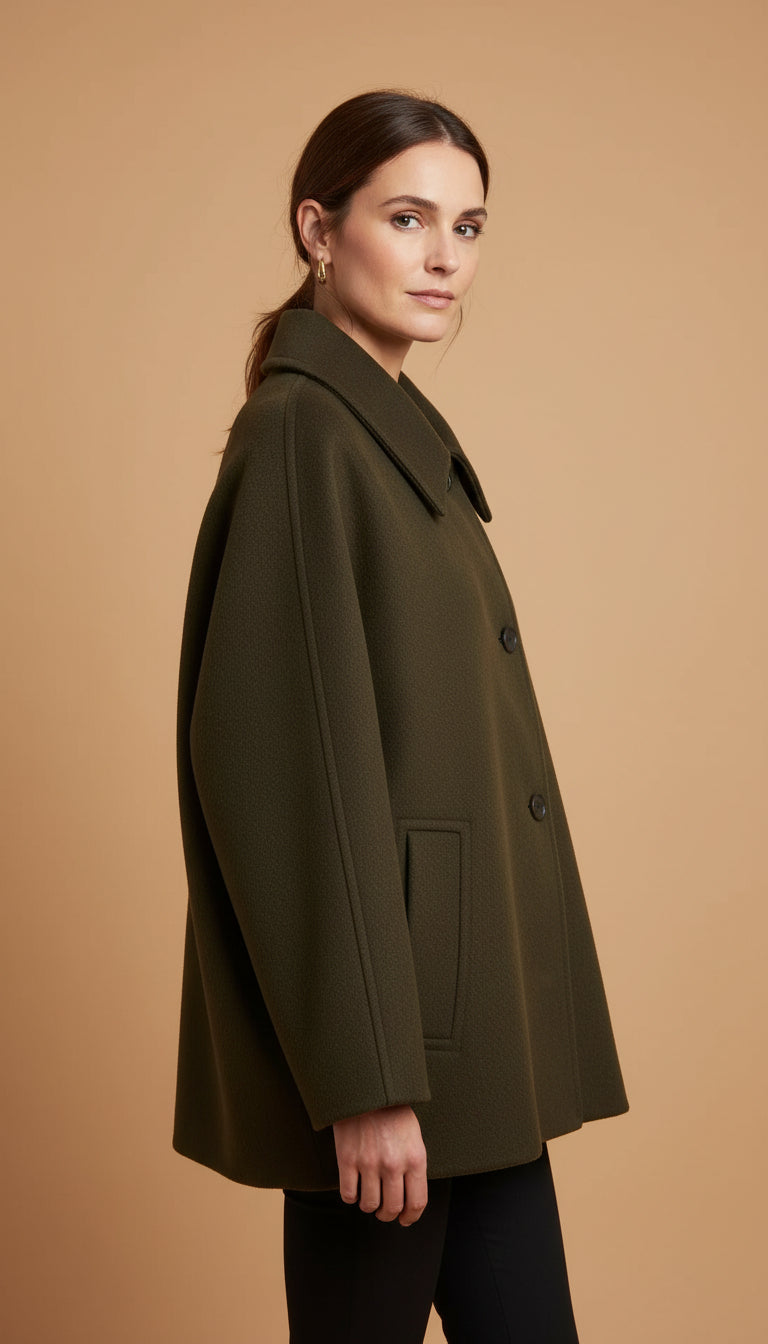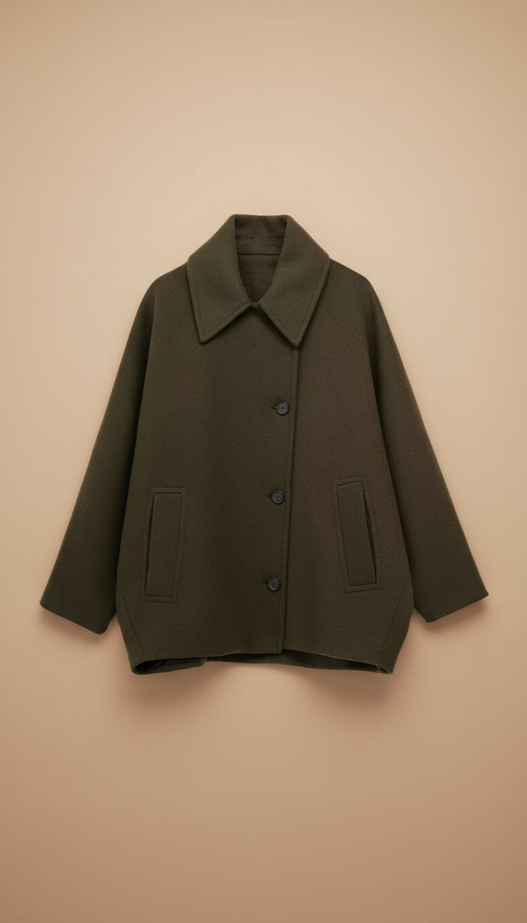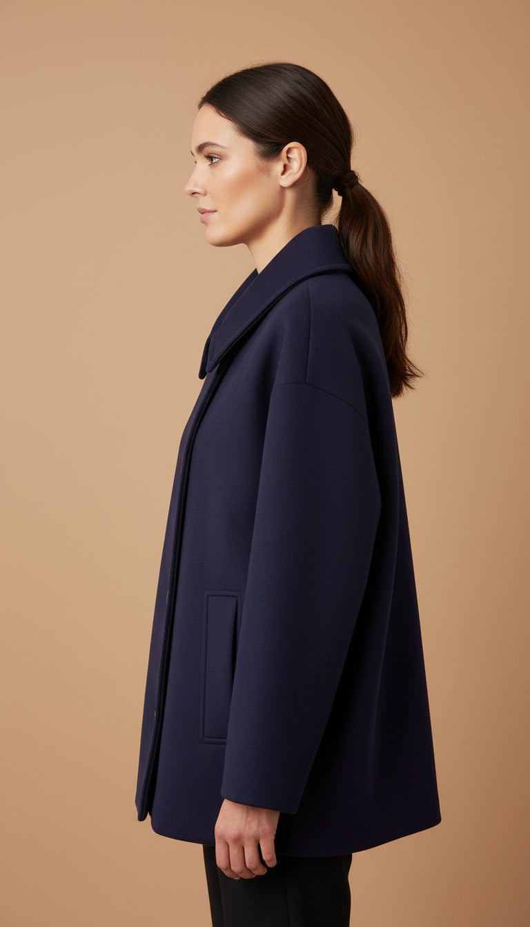 Ajuste: Este abrigo tiene un corte oversized y está diseñado para quedar holgado. Si dudas entre dos tallas, elige tu talla habitual para un look amplio o una talla menos si lo prefieres más ajustado.