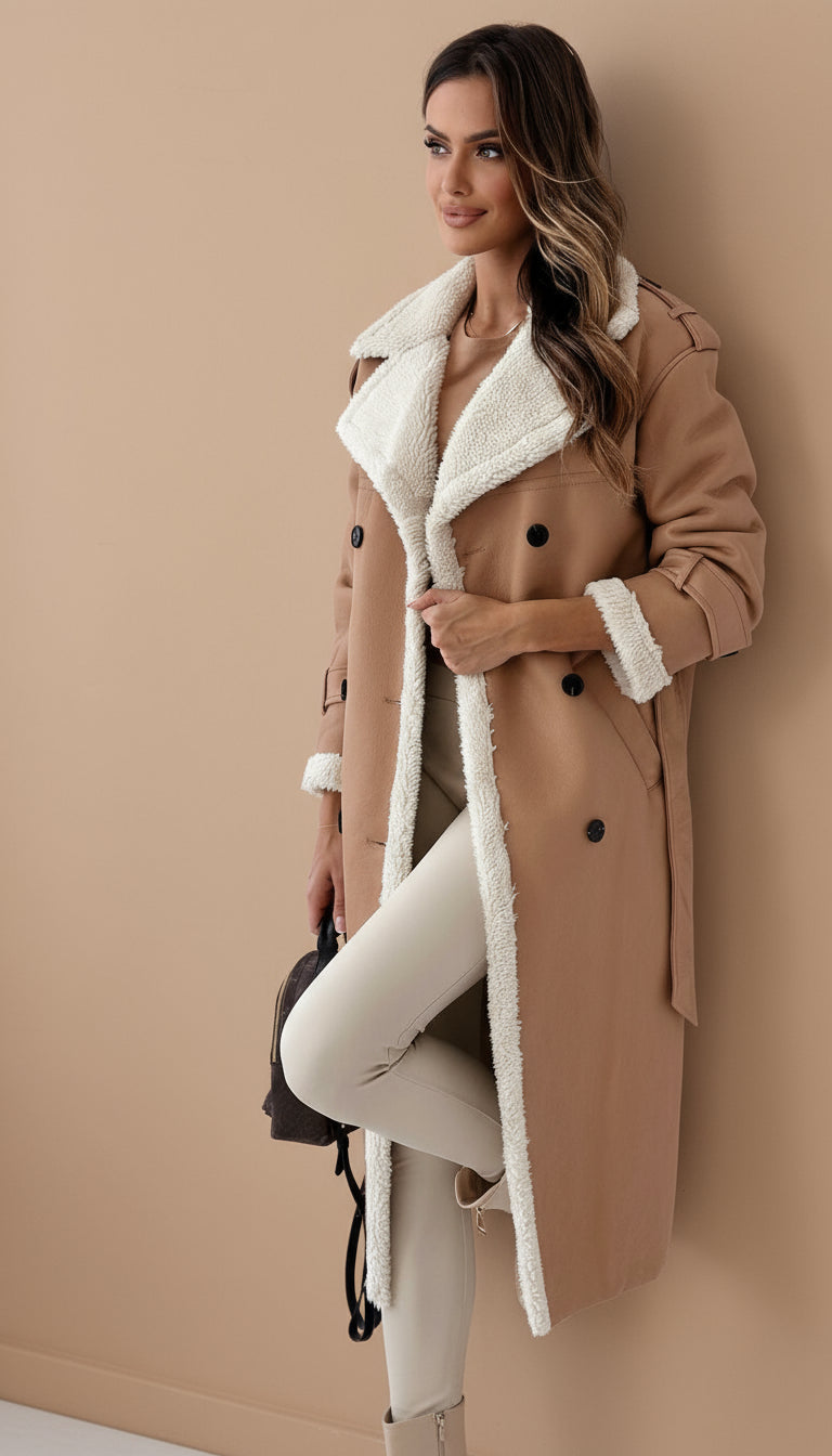 El abrigo perfecto para los días fríos: combina un diseño tipo trench con un forro suave y cálido que te envuelve en confort sin renunciar al estilo.
